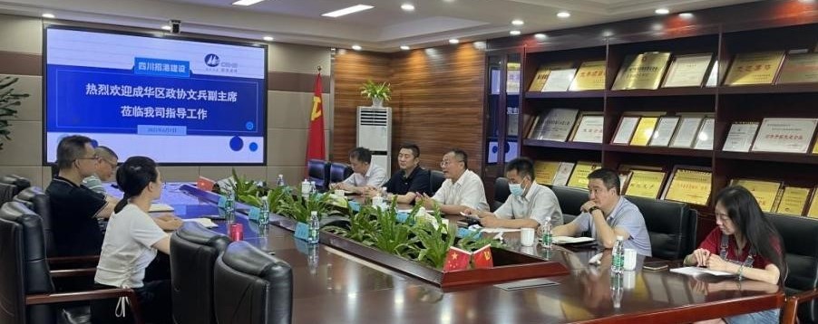6月7日,成都市成華區(qū)政協(xié)副主席文兵帶隊蒞臨四川招港建設(shè)有限公司開展調(diào)研指導(dǎo)工作,公司總經(jīng)理包中輝、總經(jīng)理助理王雨欣及副總工程師鄧正洪熱情接待并參與座談。